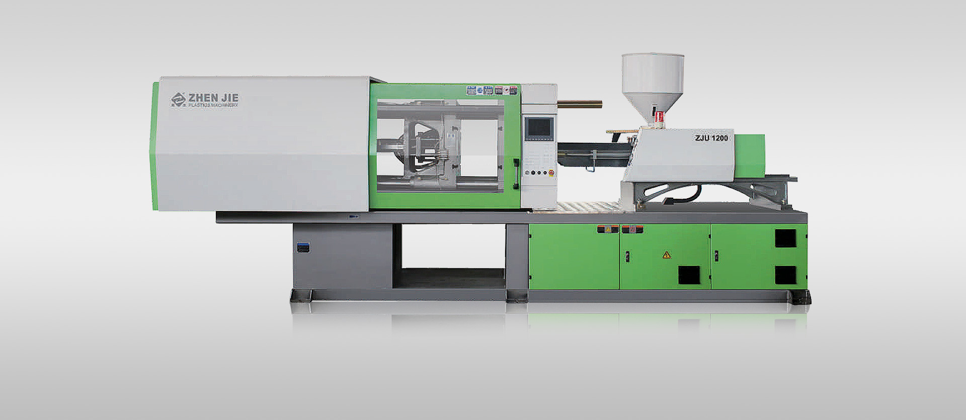 公司自主品牌"震杰"ZJ系列注射量為45-4000Tons,合模力為500-8800KN注塑機及高效節能比例變量泵系統和電木射出成型機,是集先進科技和市場新需求而研制的優質產品。適用于生產各類高精度和高強度的塑料制品。產品采用CAD、CAM技術優化設計及高精全自動數控機床加工,各部件均經過精密加工或篩選,并采用世界級優質品牌元件,按照嚴格的工藝要求進行生產、裝配、調校而成。產品結構新穎,性能穩定,高效節能,備受海內外用戶青睞。